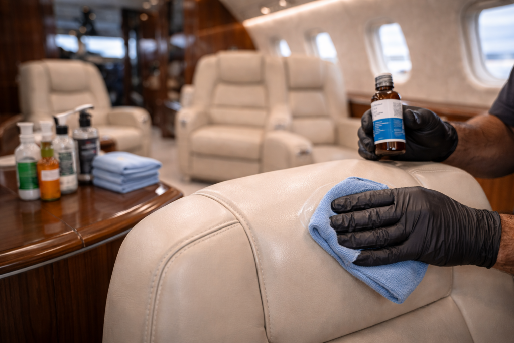 Segundo orientações técnicas da IATA, qualquer produto utilizado no interior da aeronave deve respeitar critérios de compatibilidade química e não interferir em sistemas sensíveis de ventilação e pressurização. É nesse ponto que a abordagem profissional se diferencia de práticas improvisadas.